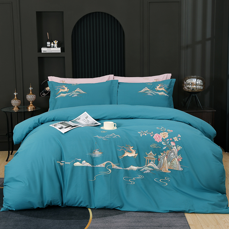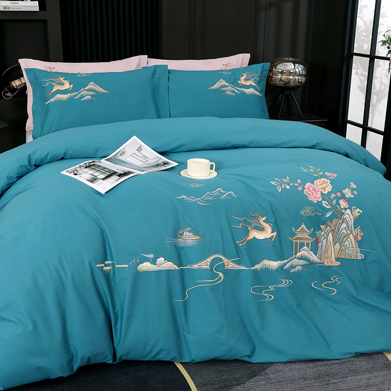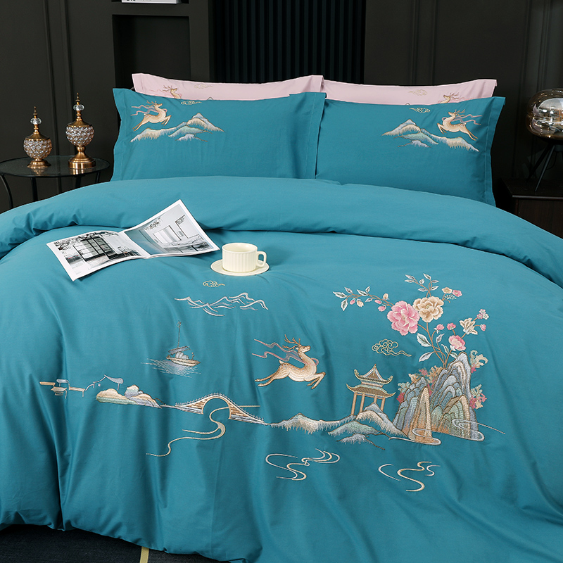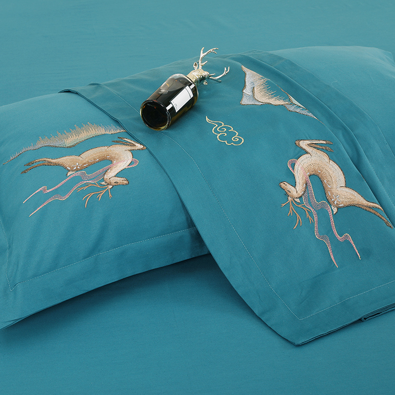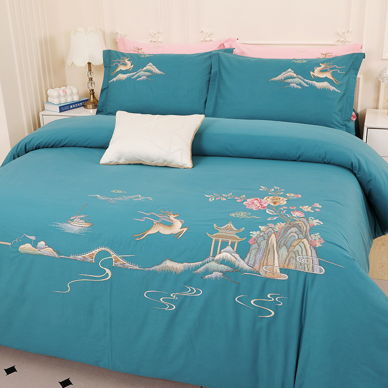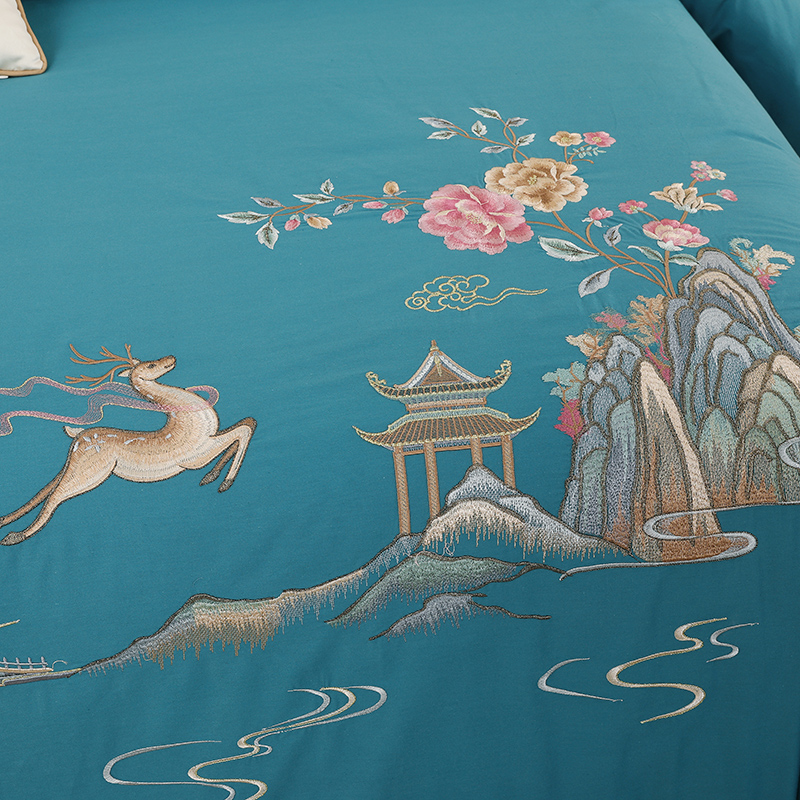 2025新款100支全棉高端刺绣四件套一鹿常红系列