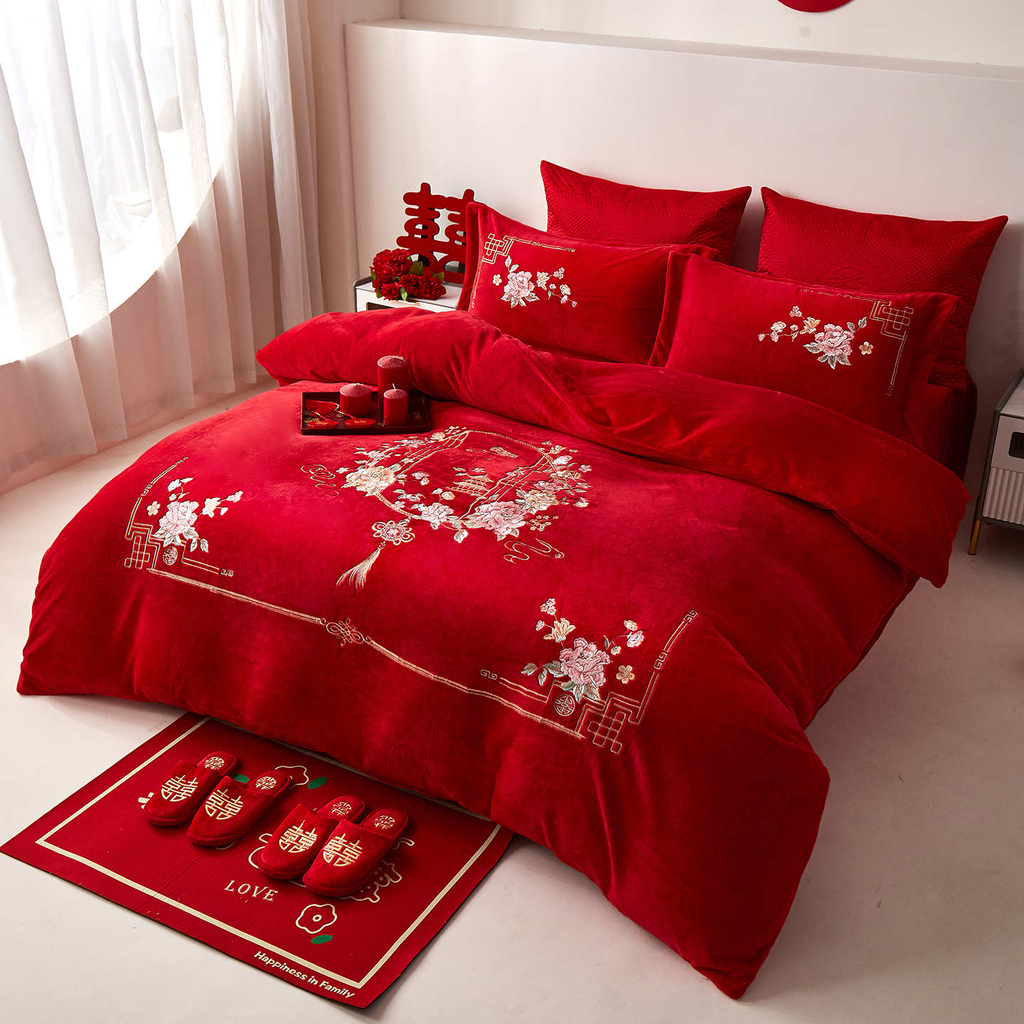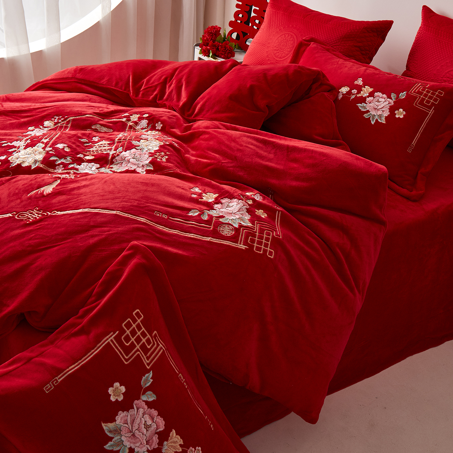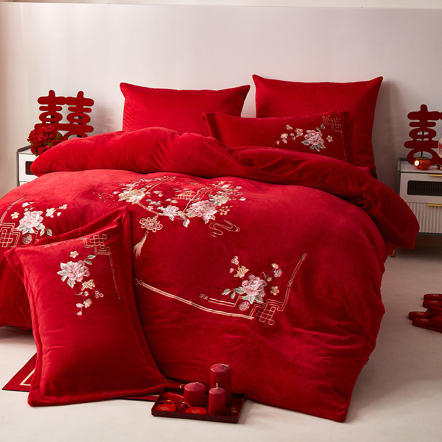 2026新品婚庆加厚9斤全消光牛奶绒四件套系列