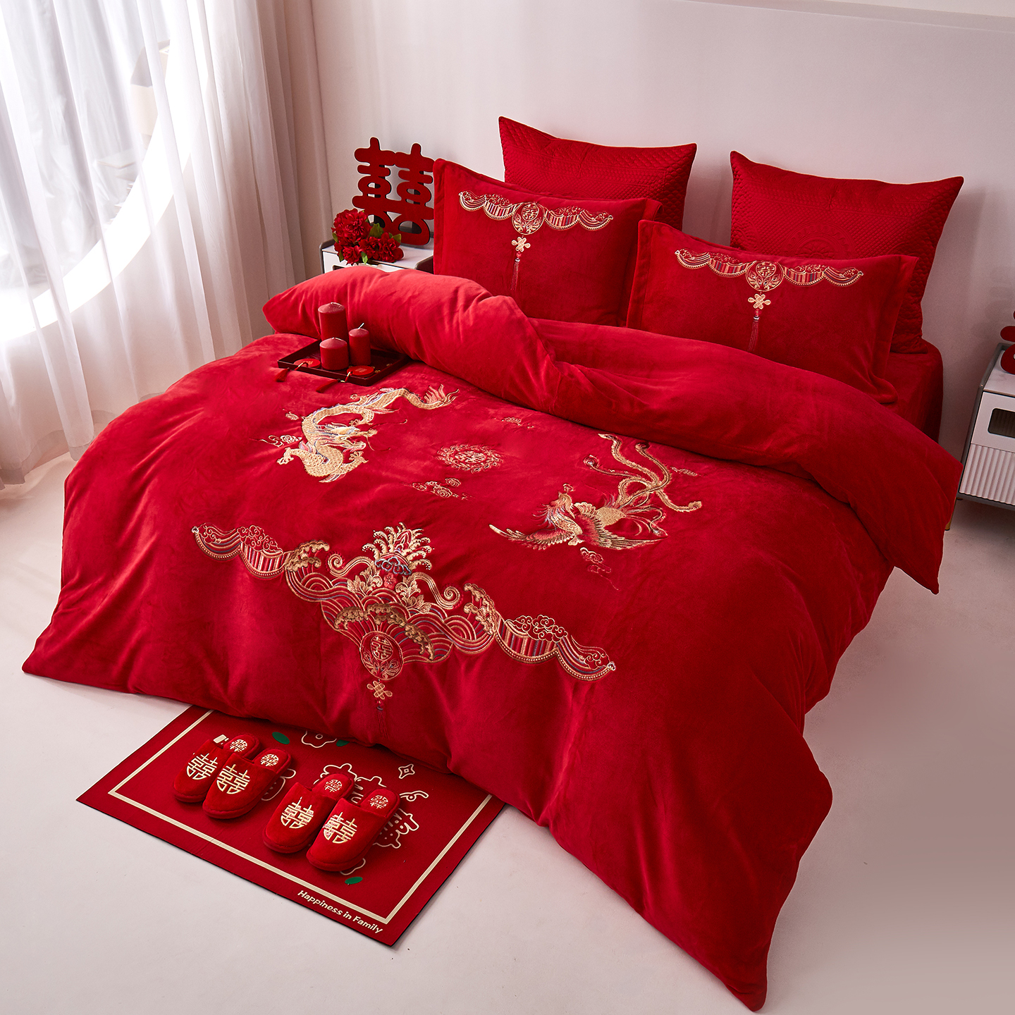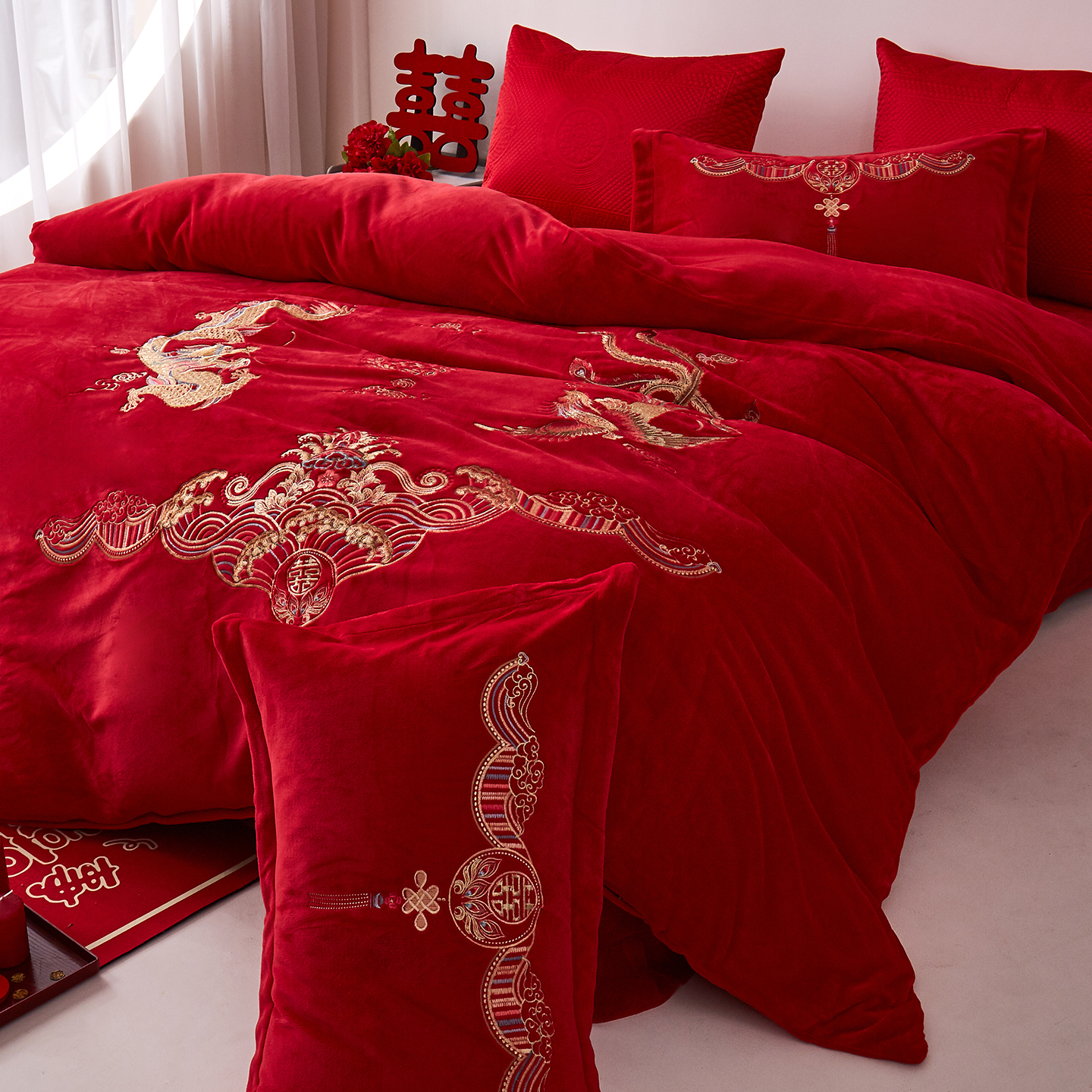 2026新品婚庆加厚9斤全消光牛奶绒四件套系列